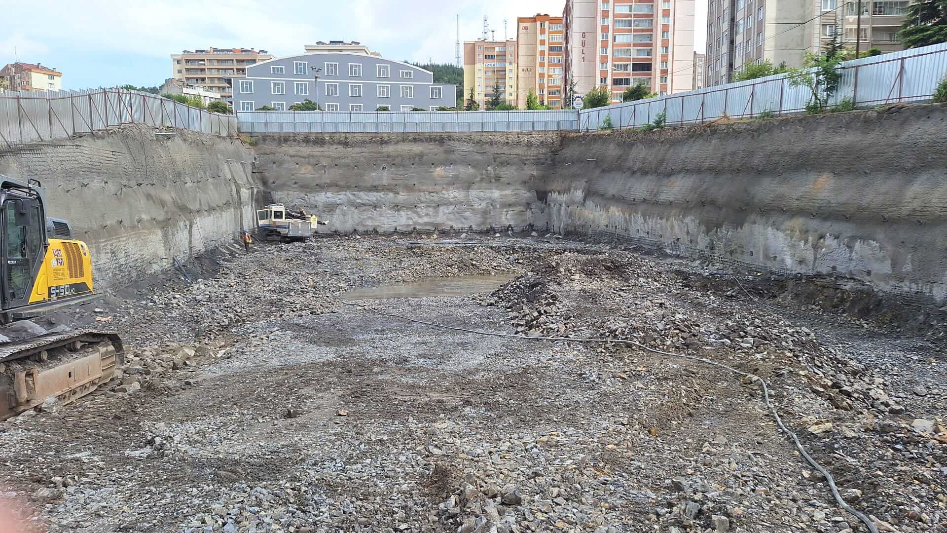 Proje Özeti: Peynirci Baba İş Merkezi Projesi’nde, derin kazı ve çevresel yapı güvenliği sağlamak amacıyla önemli çalışmalar yapılmıştır. Yapı temeli için gerçekleştirilen kazı derinliği 12-13 metreye kadar inmiştir. Bu derin kazı sürecinde, çevredeki yapılar ve altyapı güvenliği için dikkatli önlemler alınarak, iksa sistemleri, püskürtme beton, ankraj ve zemin çivisi uygulamaları başarıyla gerçekleştirilmiştir. Bu sayede projenin güvenliği ve yapı stabilitesi sağlanmıştır.