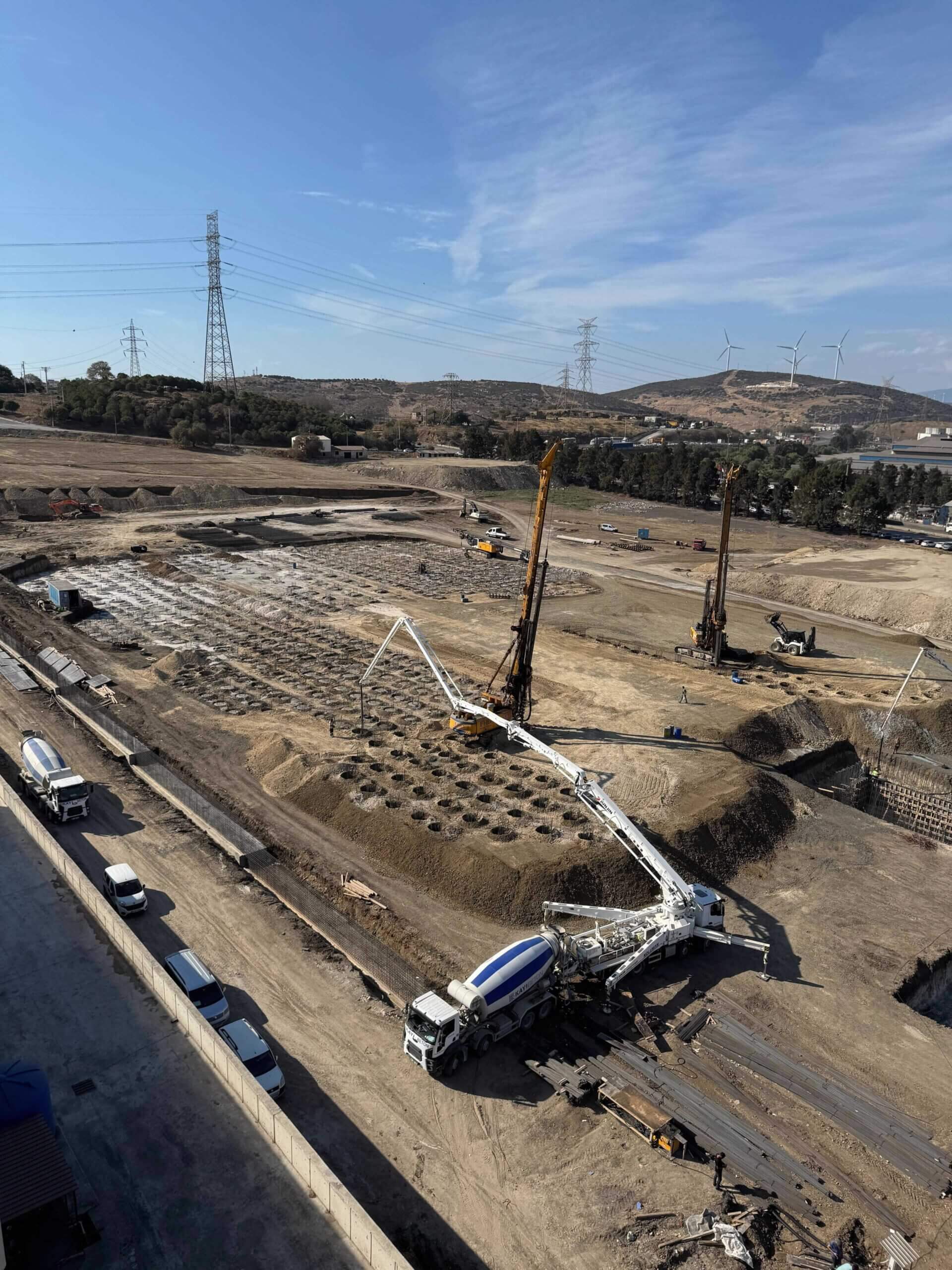 İzmir Aliağa bölgesindeki Fabrika projesi kapsamında, yapı yüklerini güvenli bir şekilde taşıyabilecek bir temel sistemi oluşturmak amacıyla kazıklı temel uygulaması gerçekleştirildi. Fore kazık tekniği ile zemin kapasitesi artırılarak yapı stabilitesi sağlandı. Proje, modern temel mühendisliği teknikleriyle tamamlanmıştır.